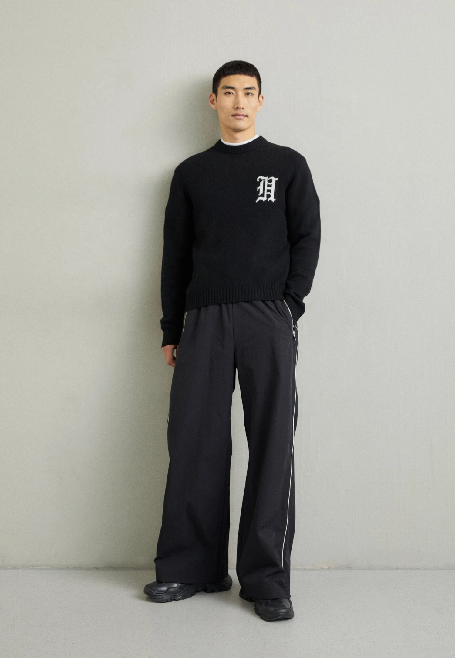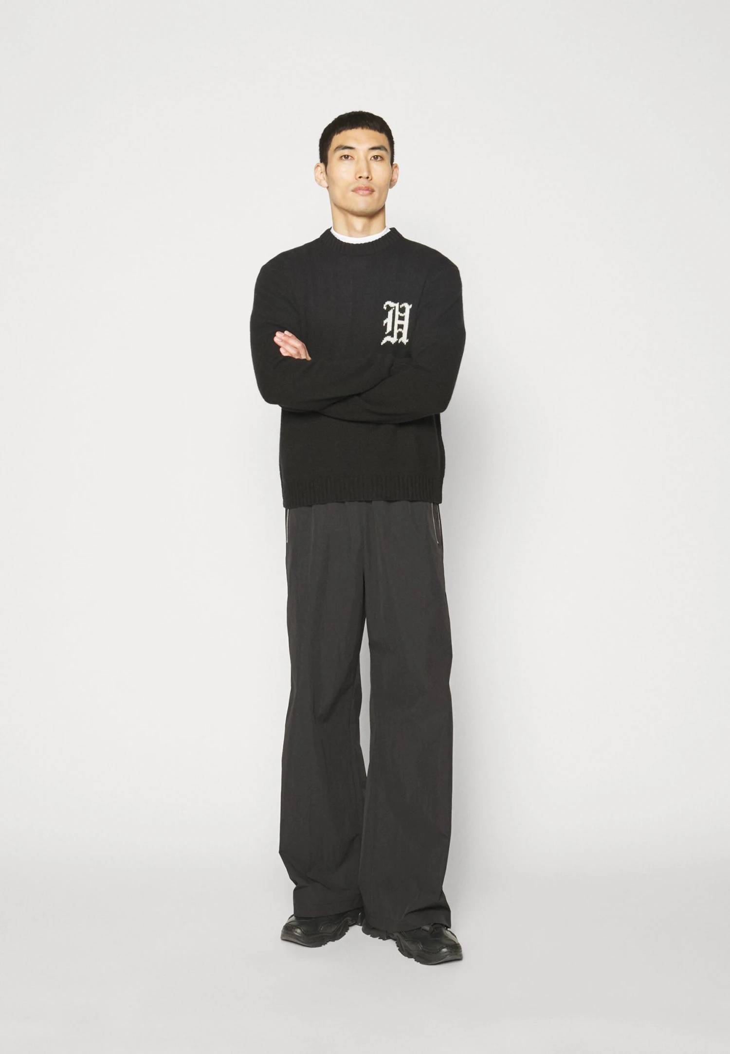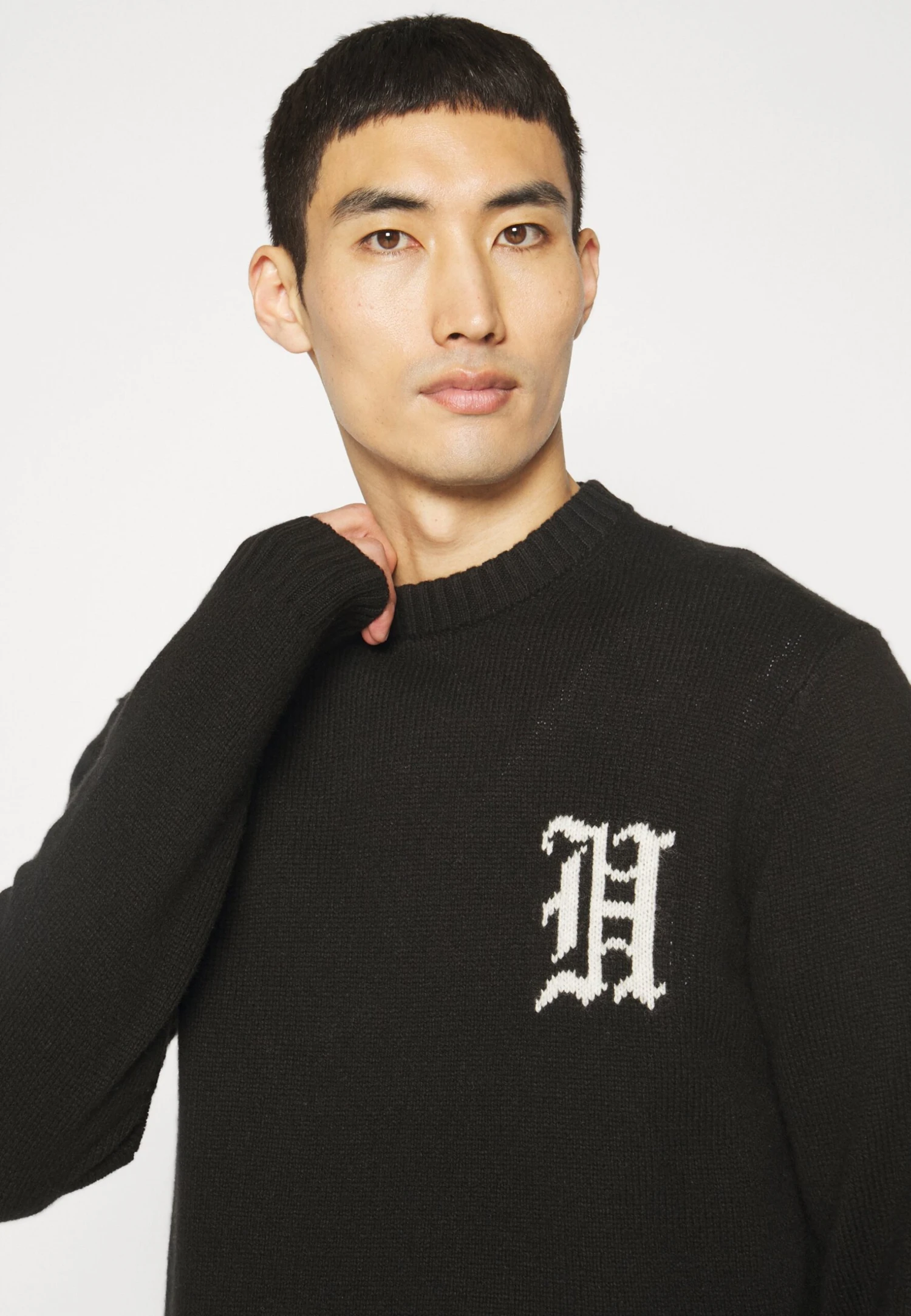 Han Kjøbenhavn Intarsia Logo Crewneck – Jersey De Punto – Black