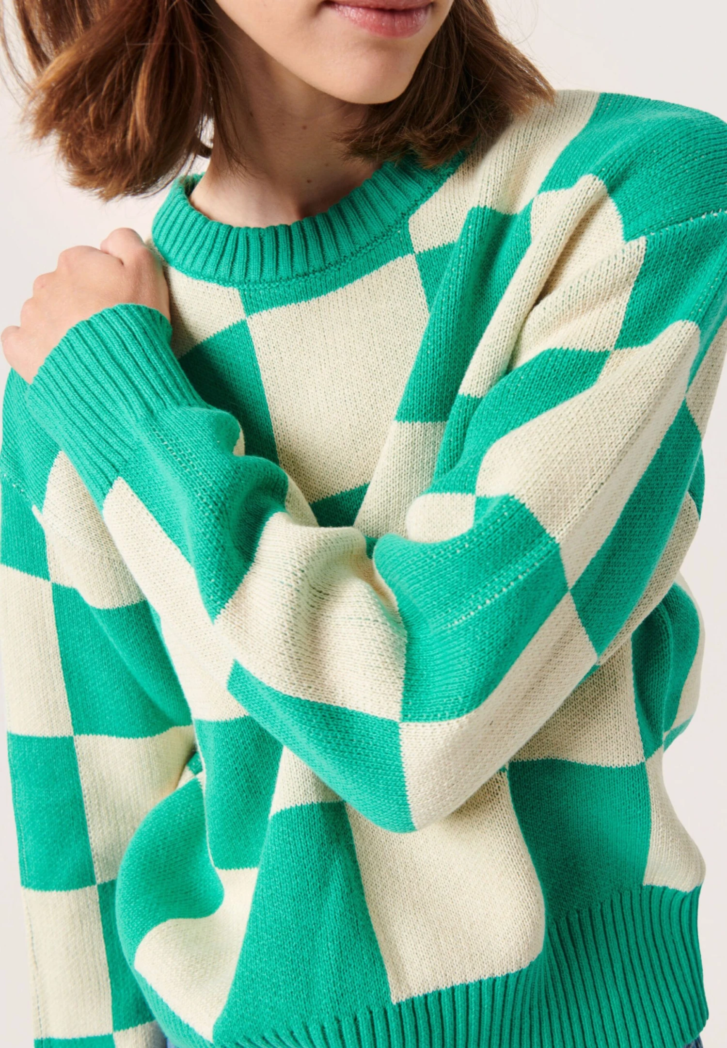 Soaked In Luxury Slcabba Ls – Jersey De Punto – Sea Green And White Large Chec